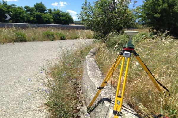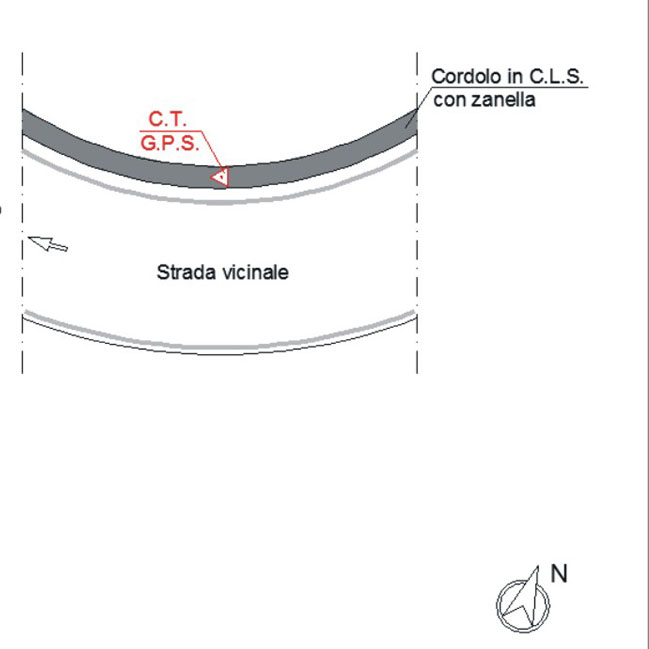 | materializzazione | Centrino orizzontale di tipo chiodo con rondella ARPAB Regione Basilicata infisso sulla sommità del cordolo in C.L.S. con zanella stradale. |