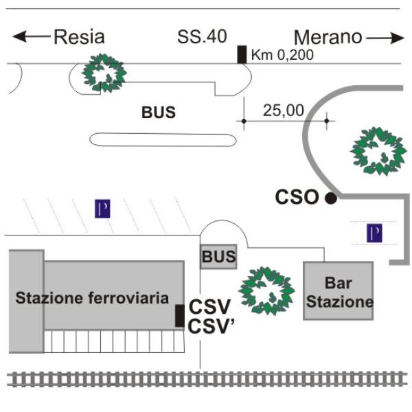 | Contrassegni | [{"simbolo_contrassegno":"B1","materializzazione":"(CSO) – Bullone infisso nel muro di recinzione in cemento armato, al centro del piazzale, di fronte al \"Bar Stazione\"."},{"simbolo_contrassegno":"V2","materializzazione":"(CSV) – Piastrina a Barilotto infissa sulla facciata della stazione ferroviaria volta verso Merano, in prossimit\u00e0 dello spigolo di sinistra."},{"simbolo_contrassegno":"V3","materializzazione":"(CSV') – Piastrina Austriaca infissa sulla facciata della stazione ferroviaria volta verso Merano, in prossimit\u00e0 dello spigolo di sinistra e a sinistra del CSV."}] |