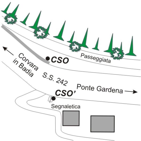 | Contrassegni | [{"simbolo_contrassegno":"B1","materializzazione":"(CSO) – Bullone infisso all'inizio del muro del guard rail, a destra in direzione Corvara in Badia."},{"simbolo_contrassegno":"B4","materializzazione":"(CSO') – Centrino universale infisso sul basamento di un palo della segnaletica stradale."}] |