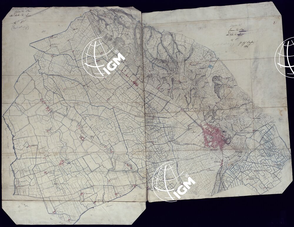 Il titolo non è presente sulla carta. Gruppo di 16 mappe catastali riconosciute sul terreno probabilmente per la costruzione della carta generale degli Stati Sardi al 50.000. Alcune di esse recano le firme dei Cap.i Basso e Lafleche e del geometra Coda.