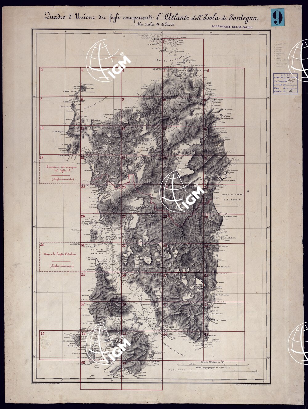 L’Atlante è stato realizzato dal Gen. De Candia utilizzando le riduzioni delle mappe catastali rilevate negli anni 1841-1847 che servirono per la realizzazione della Carta dell’Isola di Sardegna del Gen. La Marmora.