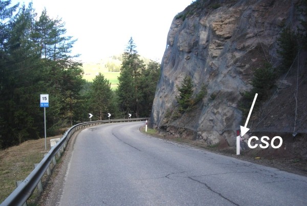 | Contrassegni | [{"simbolo_contrassegno":"B1","materializzazione":"(CSO) – Bullone infisso nella roccia posta a monte della strada di fronte al km 15,000."}] |