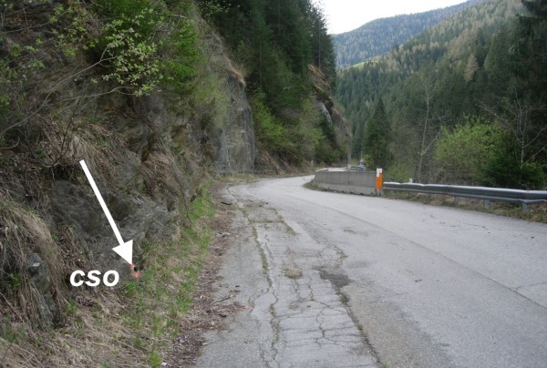 | Contrassegni | [{"simbolo_contrassegno":"B1","materializzazione":"(CSO) – Bullone infisso su roccia che si trova lungo la strada statale in disuso, parellela alla nuova galleria n.2."}] |
