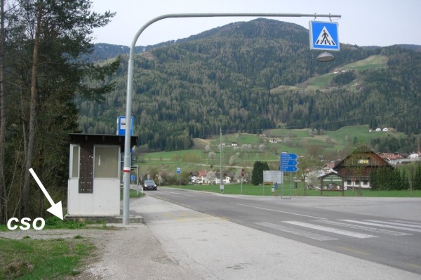 | Contrassegni | [{"simbolo_contrassegno":"B1","materializzazione":"(CSO) – Bullone infisso nelle fondamenta della pensilina per la fermata dell'autobus, lato fiume."}] |