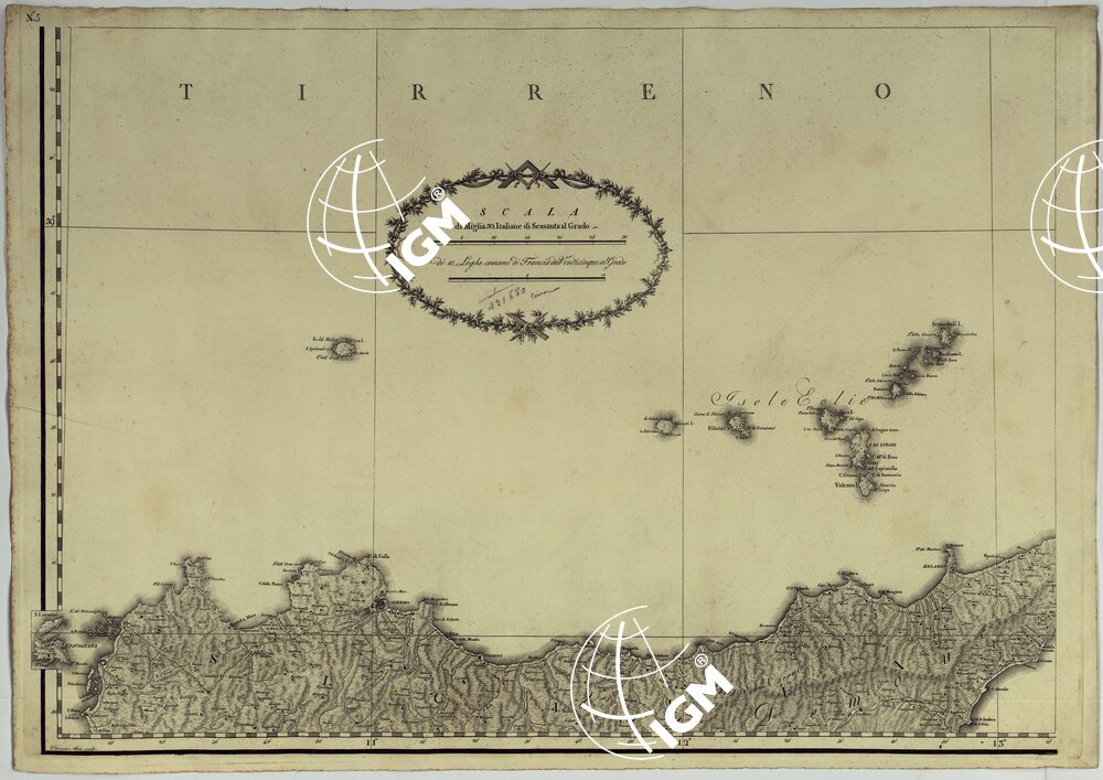 Carta in sei fogli tratta da incisione su rame, stampati in nero. Orografia dimostrata a mezzo di tratteggio. Il foglio n. 2 contiene il titolo e la legenda dei segni convenzionali per i confini (di stato, di provincie, di distretti, di circondari) e per le strade (costruite, in costruzione, ferrovie). Sotto al titolo (foglio n. 2) è scritto: “Aless.o d’Anna inc., e del ” e ” Gius. Azzerboni inc.”. Il foglio n. 5 reca due scale grafiche calcolate in miglia italiane e in leghe di Francia e in basso a sinistra la firma ” Vincenzo Aloja sculp.”
