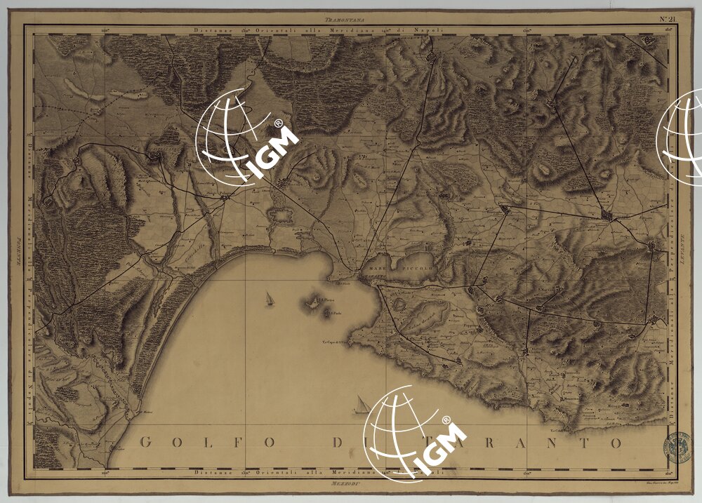 ATLANTE GEOGRAFICO DEL REGNO DI NAPOLI DELINEATO PER ORDINE DI FERDINANDO IV RE DELLE DUE SICILIE &C., &C., DA GIO. ANTONIO RIZZI ZANNONI GEOGRAFO DI SUA MAESTA’ E TERMINATO NEL 1808 – TAVOLA 21.