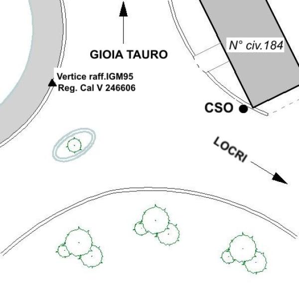 | Contrassegni | [{"simbolo_contrassegno":"B1","materializzazione":"(CSO) – Bullone infisso su cordolo in cls adiacente ad un edificio di civile abitazione con numero civico 184"}] |