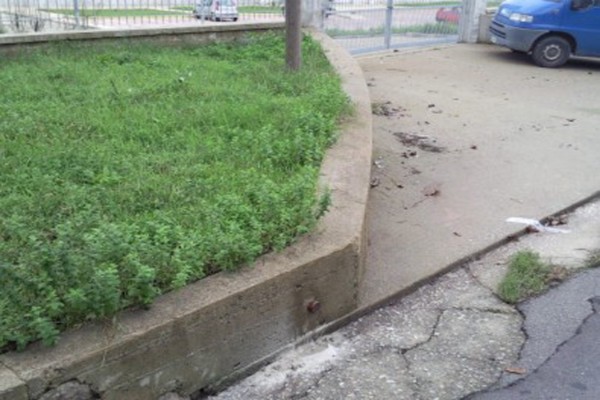 [{"simbolo_contrassegno":"B1","materializzazione":"(CSO) – Bullone infisso su cordolo dell'aiuola all'ingresso di un edificio industriale"}]