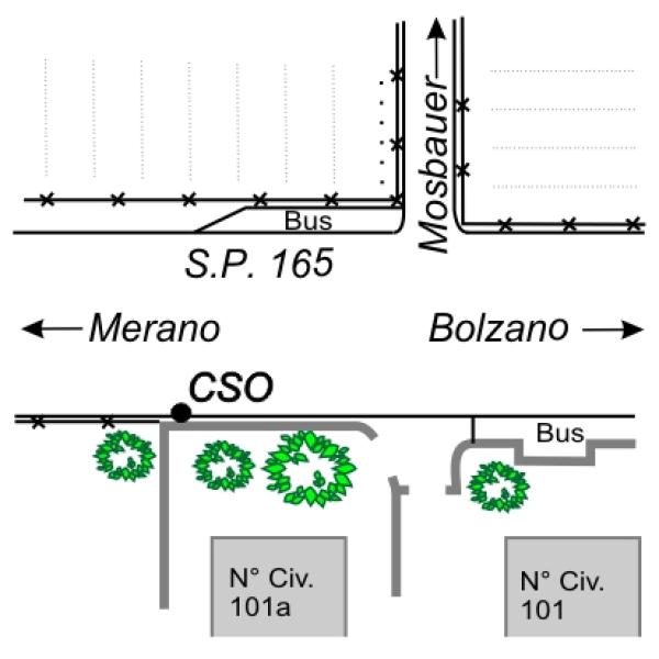 [{"simbolo_contrassegno":"B1","materializzazione":"(CSO) – Bullone infisso nel muro di recinzione in cemento armato della casa al N\u00b0 Civ. 101\/A, a sinistra della strada, in direzione di Merano."}]