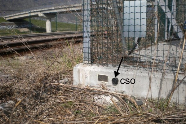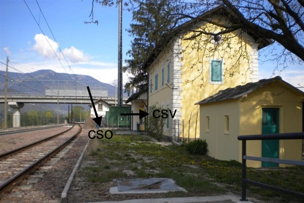 [{"simbolo_contrassegno":"B1","materializzazione":"(CSO) – Bullone infisso nella fondazione in cemento armato di base al traliccio del trasmettitore, a sinistra guardando verso Merano."},{"simbolo_contrassegno":"V4","materializzazione":"(CSV) – Piastrina del Magistrato alle Acque infissa nella facciata volta verso i binari della vecchia stazione, in prossimit\u00e0 dellao spigolo sinistro delledificio principale."}]