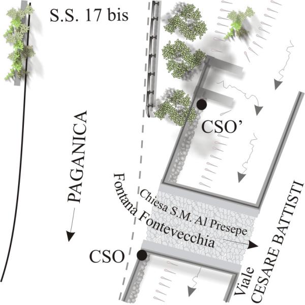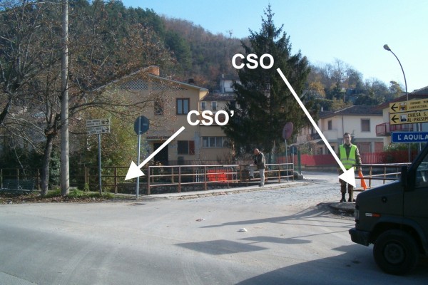 [{"simbolo_contrassegno":"B4","materializzazione":"(CSO) – Centrino universale (Regione Abruzzo) posto sul muro laterale del ponte, bivio per Santa Maria al Presepe, sito al Km 10,700."},{"simbolo_contrassegno":"B1","materializzazione":"(CSO') – Bullone del tipo a cipolla (S.G.N.) infisso nel muro di sostegno del canale, riva destra a 8,30 m da inizio balaustra del ponte."}]