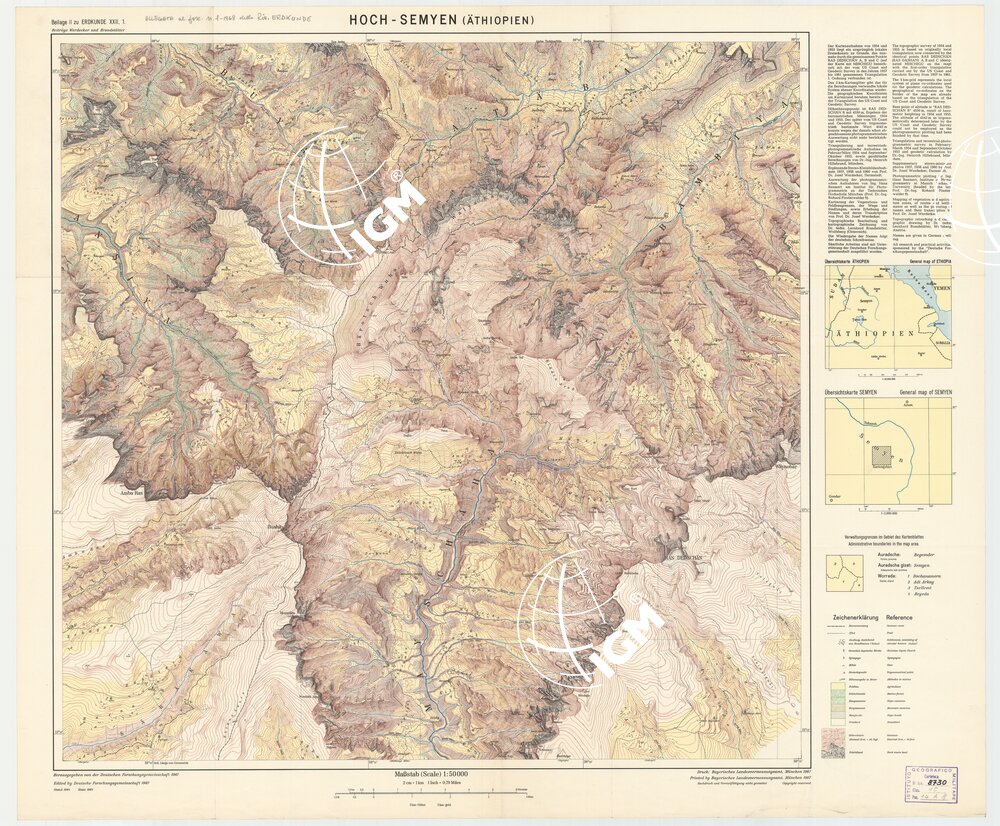 Rappresentazione orografica a curve di livello. Sulla destra le spiegazioni della carta.
