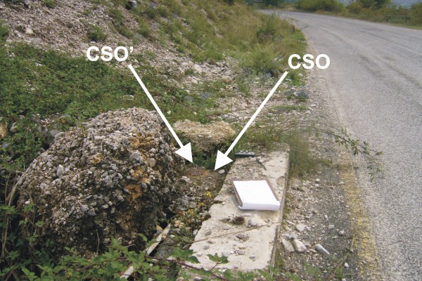| Contrassegni | [{"simbolo_contrassegno":"B4","materializzazione":"(CSO) – Centrino universale (Regione Abruzzo) infisso sul muro di contenimento del tombino posto in prossimit\u00e0 del Km 1,200."},{"simbolo_contrassegno":"B7","materializzazione":"(CSO') – Trigonometrico del Catasto posto sulla parete laterale destra del tombino a 10 cm dal CSO."}] |