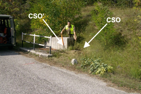 | Contrassegni | [{"simbolo_contrassegno":"P4","materializzazione":"(CSO) – Pozzetto in cemento (S.G.N.) posto a fianco dell'inghiottitoio presso il Km 2,200."},{"simbolo_contrassegno":"B1","materializzazione":"(CSO') – Bullone infisso sul muro, lato monte dell'inghiottitoio."}] |