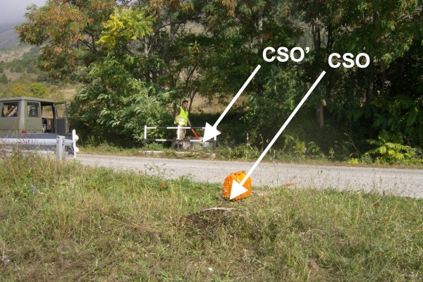 | Contrassegni | [{"simbolo_contrassegno":"P4","materializzazione":"(CSO) – Pozzetto in cemento (S.G.N.) sito al Km 3,011 a margine strada dal lato opposto alla chilometrica."},{"simbolo_contrassegno":"B1","materializzazione":"(CSO') – Bullone infisso nel muro delimitante il tombino sito al Km 3,015."}] |