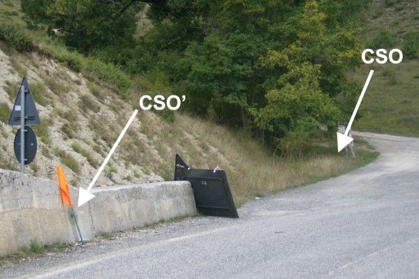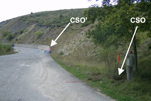 [{"simbolo_contrassegno":"P4","materializzazione":"(CSO) – Pozzetto in cemento, (S.G.N.) sito in prossimit\u00e0 del Km 5,700, a 12 m dal bivio con un sentiero ed a 2,40 m dal margine stradale."},{"simbolo_contrassegno":"B1","materializzazione":"(CSO') – Bullone infisso nel muro di contenimento, lato monte, presso il Km 5,700."}]