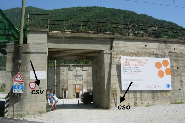 | Contrassegni | [{"simbolo_contrassegno":"B1","materializzazione":"(CSO) – Bullone infisso sul viadotto ferroviario a destra dell'accesso alla fortezza."},{"simbolo_contrassegno":"V6","materializzazione":"(CSV) – Piastrina con cilindretto infissa sul viadotto ferroviario a sinistra dell'accesso alla fortezza."},{"simbolo_contrassegno":"B4","materializzazione":"(CSO') – Centrino universale infisso sul muro del guard rail poco prima dell incrocio della strada per Aica."}] |