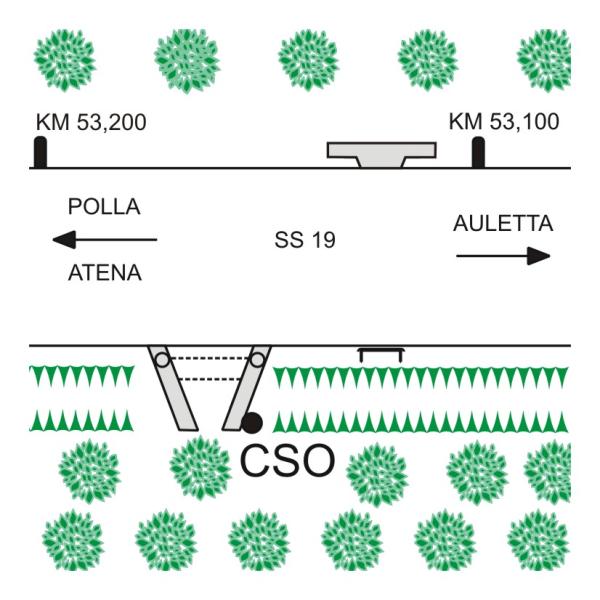 [{"simbolo_contrassegno":"B1","materializzazione":"(CSO) – Bullone infisso nel fianco, lato a valle, della soletta in cemento dell'attraversamento campestre all'altezza del km 53,100 della S.S.19 ."}]