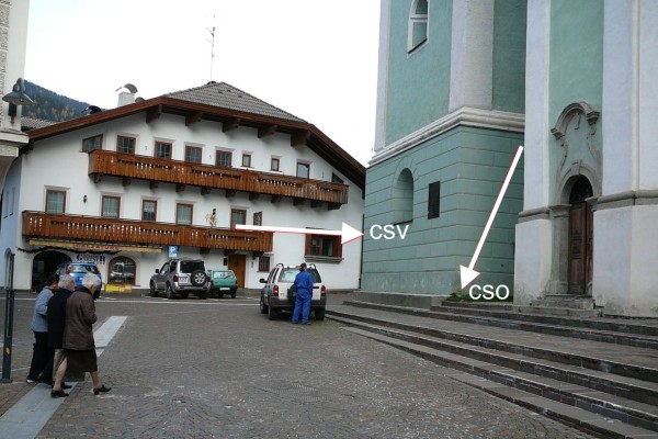[{"simbolo_contrassegno":"B1","materializzazione":"(CSO) – Bullone infisso sulla facciata del campanile volta verso la Chiesa di San Giovanni Battista, in prossimit\u00e0 dello spigolo sinistro."},{"simbolo_contrassegno":"V3","materializzazione":"(CSV) – Piastrina austriaca infissa sulla facciata del campanile volta verso la la piazza, in prossimit\u00e0 dello spigolo sinistro."}]