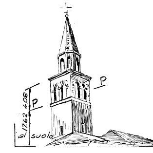 | Materializzazione | Campanile della chiesa. Asse geometrico del campanile. Segnalizzazione jugoslava. |