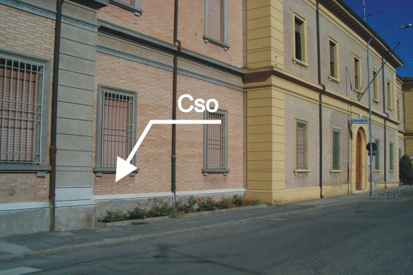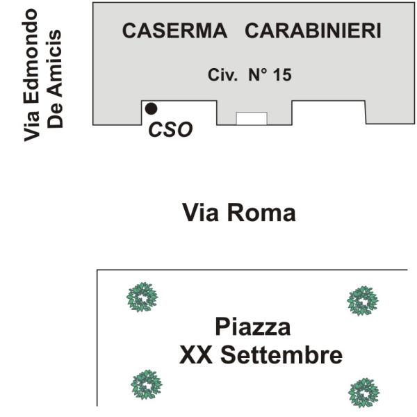 | Contrassegni | [{"simbolo_contrassegno":"P1","materializzazione":"(CSO) Chiusino in ghisa protetto da coperchio anonimo, in cemento 40×40, posto nella risega a sinistra della porta d'ingresso della caserma."}] |