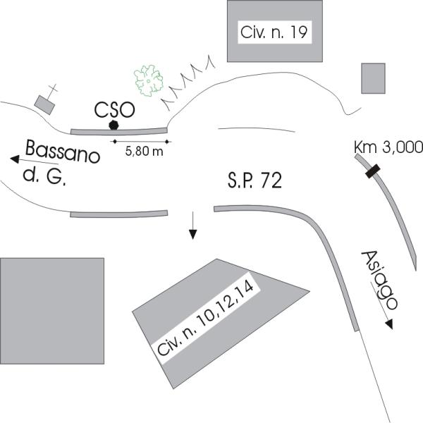 | Contrassegni | [{"simbolo_contrassegno":"B1","materializzazione":"(CSO) – Bullone infisso all' esterno del muro a retta in cemento armato di valle della strada, davanti al civico numero 10, all' altezza del km 2,975."}] |