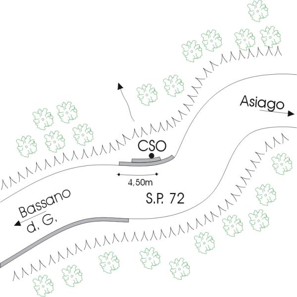 [{"simbolo_contrassegno":"B1","materializzazione":"(CSO) – Bullone infisso all' esterno del muro a retta in cemento armato, di valle della strada a circa 4,5 metri dalla testa rivolta a Bassano. All' altezza del km 3,800."}]