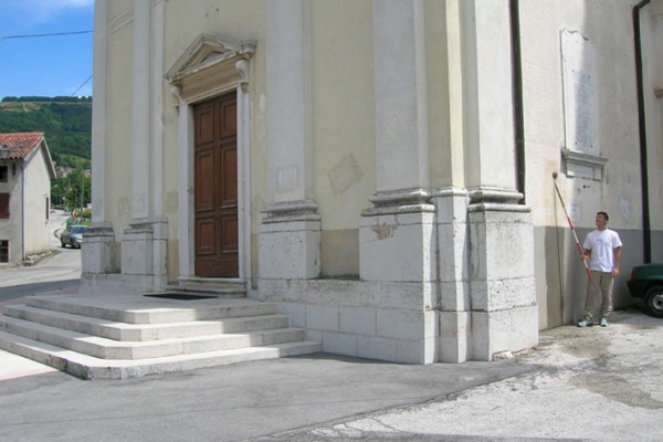 | Contrassegni | [{"simbolo_contrassegno":"B1","materializzazione":"(CSO) – Bullone infisso sulla facciata laterale destra della Chiesa a destra della lapide."},{"simbolo_contrassegno":"V6","materializzazione":"(CSV) – Piastrina con cilindretto infissa nella stessa facciata a sinistra della lapide."}] |