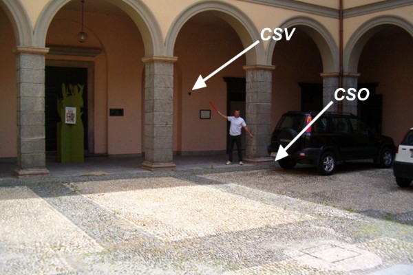 | Contrassegni | [{"simbolo_contrassegno":"P1","materializzazione":"(CSO) – Chiusino in ghisa posto nel cortile interno del Palazzo Comunale alla base del primo pilastro di destra del colonnato dal lato opposto rispetto all'ingresso."},{"simbolo_contrassegno":"V1","materializzazione":"(CSV) – Mensola infissa nel sottoportico, alle spalle del CSO, a destra di una nicchia con lapide commemorativa."}] |