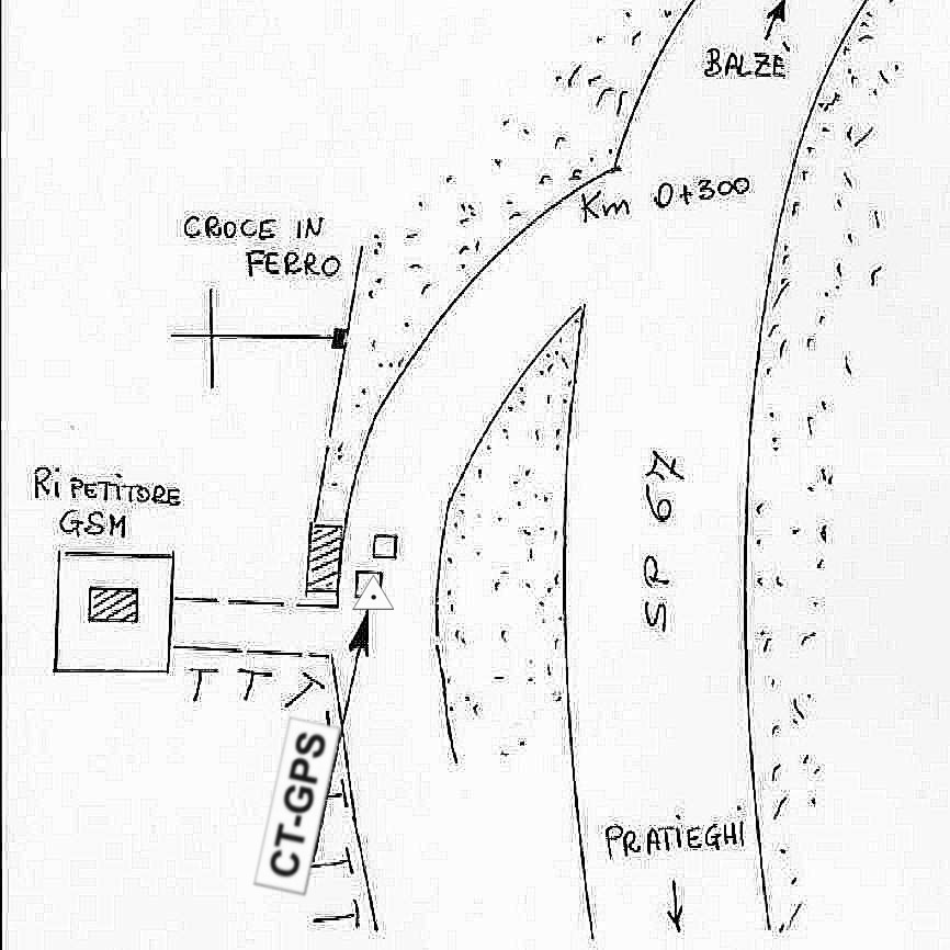 Borchia infissa sul cordolo del tombino della cassetta ENEL situata nei pressi del ripetitore GSM sulla S.P. 67 al km 0+300.