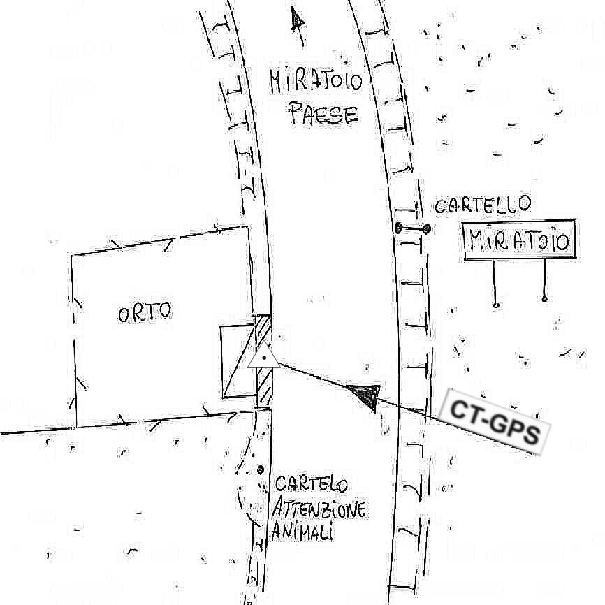 | Materializzazione | Centrino in acciaio inox murato sulla sommità della spalletta del ponticello posto a bordo della strada che da Miratoio va verso Petrella. |