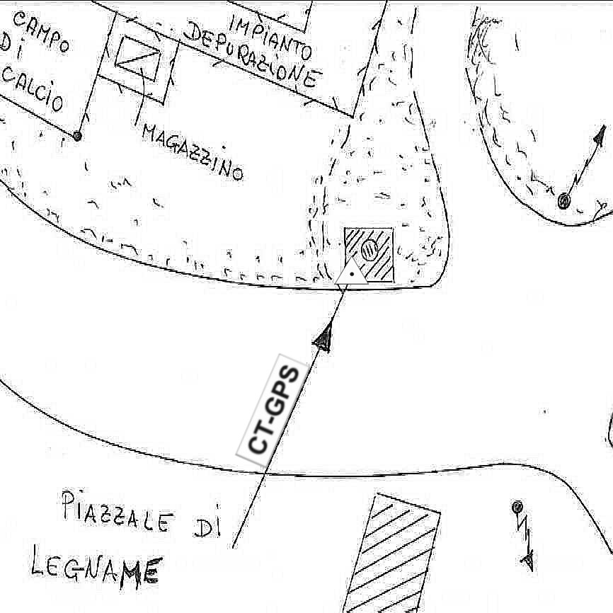 | Materializzazione | Centrino in acciaio inox murato sulla sommità del grosso tombino in calcestruzzo con apertura circolare, posto nelle vicinanze del campo sportivo e dell'impianto di depurazione di Ponte Messa. |