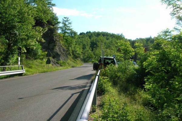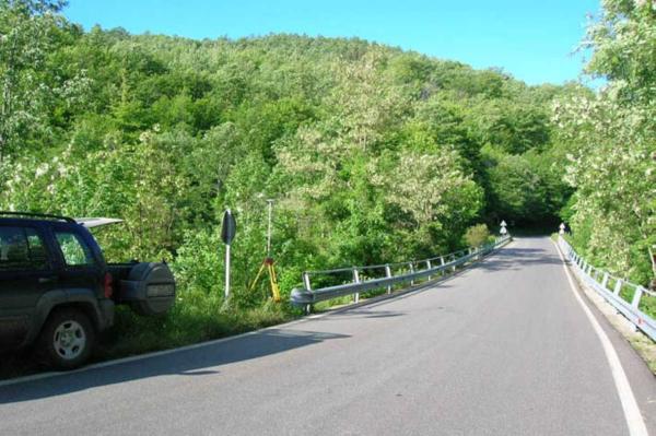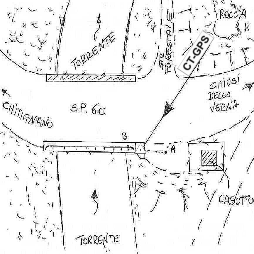 Centrino in acciaio inox murato sulla sommità della spalla del ponte sul torrente presso il km 13+100 della S.P. 60 di Chitignano, vicino al casotto.