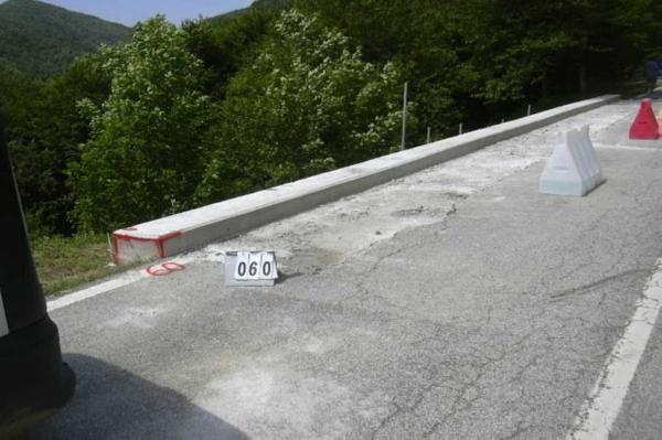 Borchia infissa sul muro di sostegno della S.S. 9 TER, che da Premilcuore conduce a Firenze nelle vicinanze del Km 52+450.