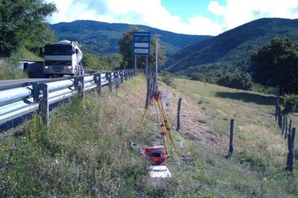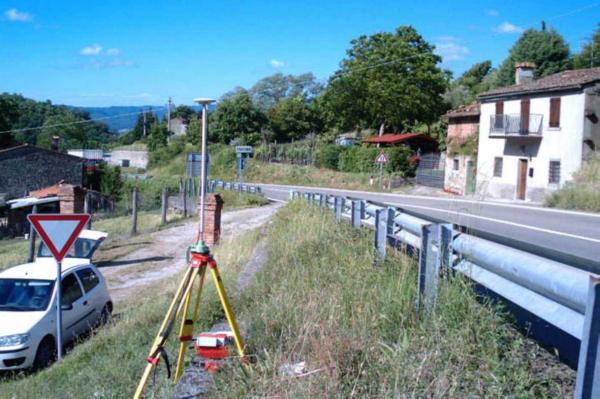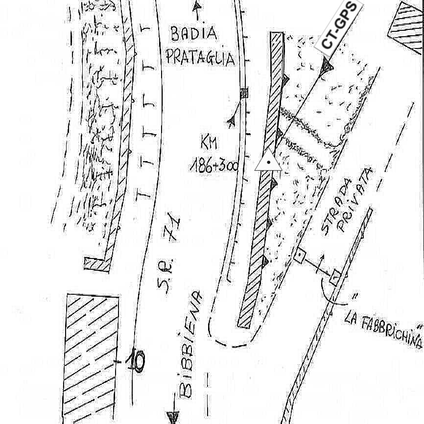Centrino in acciaio inox infisso sulla sommità del muro di contenimento, posto a bordo strada lungo la S.R. 71 in prossimità del Km 186+300 presso l'accesso alla proprietà "La Fabbrichina" dopo la frazione di Partina nel Comune di Bibbiena.