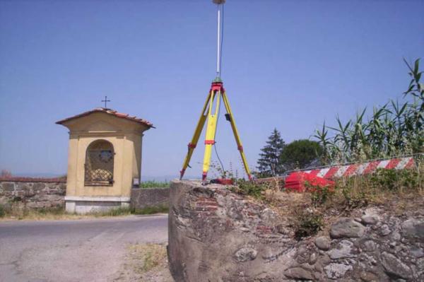 Centrino in acciaio inox cementato sul muro in pietra di contenimento dell'argine del torrente Ombrone in Via Salceto.