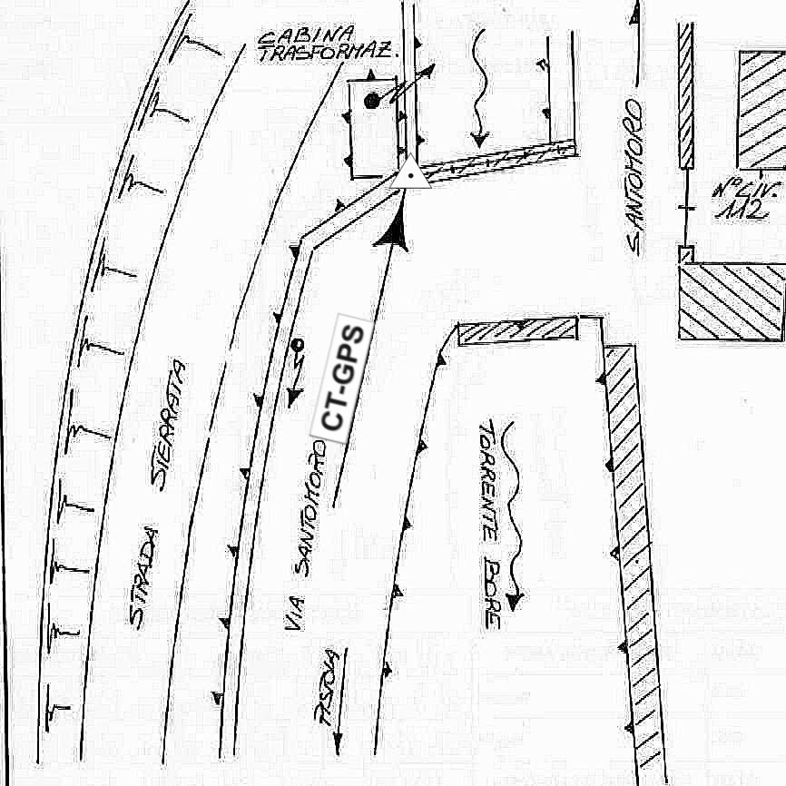 | Materializzazione | Centrino in acciaio inox murato in Via Santomoro in prossimità del ponte sul torrente Bore, sulla spalletta del ponte stesso, presso una cabina di trasformazione MT-BT vicino al palo Enel e davanti al civico 112. Alla data dell'ultima ricognizione il punto non è stato rintracciato. |