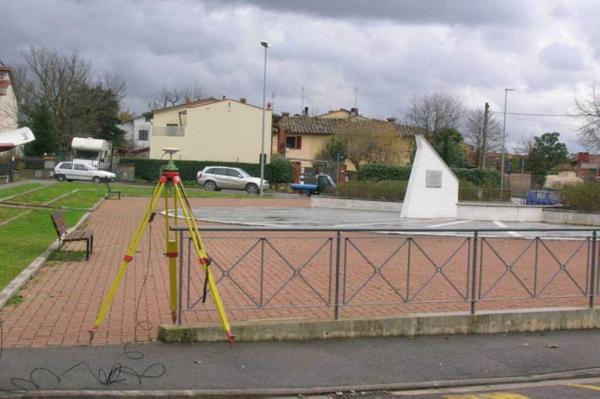 | Materializzazione | Centrino in acciaio inox infisso sulla sommità del muretto che delimita l'area con meridiana nella Piazza Campobello in frazione Panicaglia di Borgo San Lorenzo. |