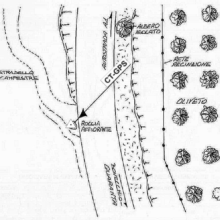 | Materializzazione | Centrino in acciaio inox murato su roccia affiorante. |