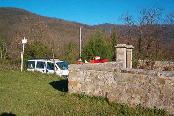 Centrino in acciaio inox cementato sullo spigolo sud del muro di cinta del cimitero della frazione di S.Michele di Incisa.