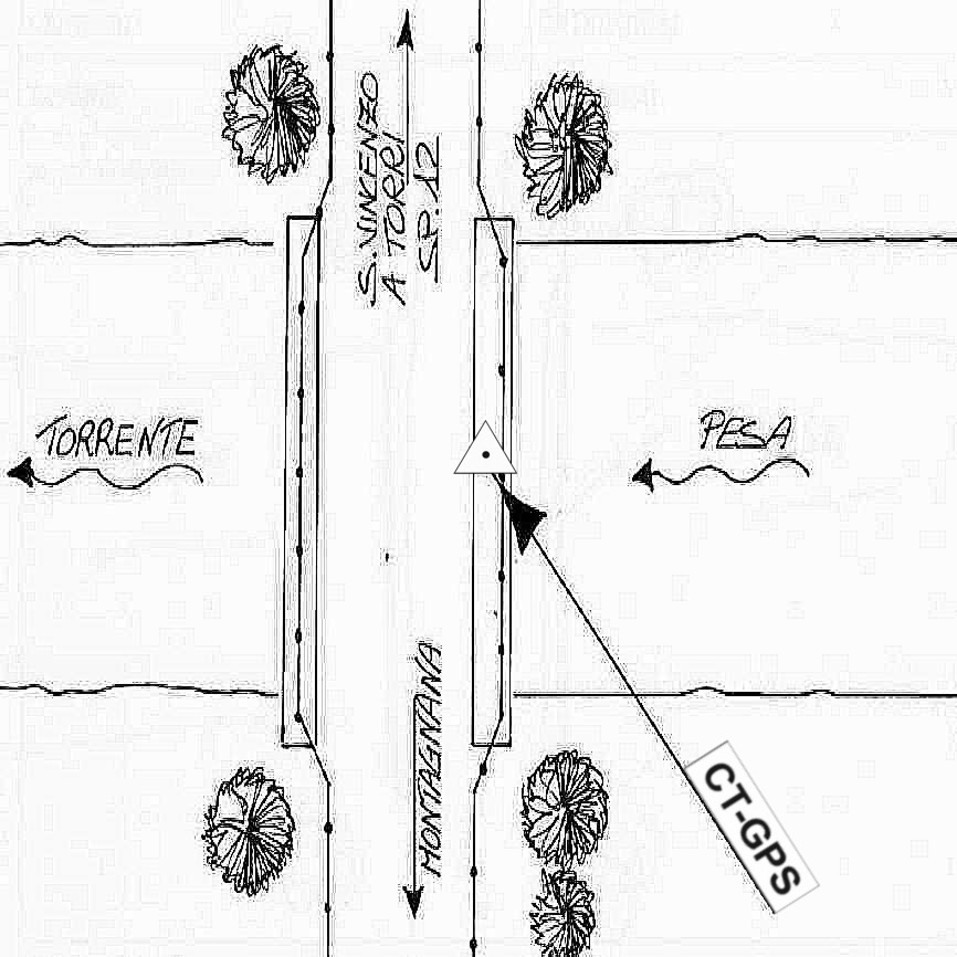 | Materializzazione | Centrino in acciaio inox cementato sulla trave lato monte in corrispondenza del pilone centrale del ponte sul fiume Pesa, sulla strada che porta a Montagnana. |