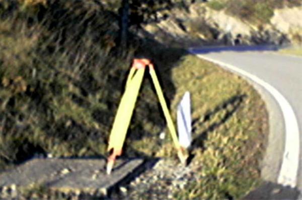 | Materializzazione | Centrino in acciaio inox murato sulla base in calcestruzzo della copertura del piccolo tombino situato sul canale di scolo a bordo strada, posto a fianco della strada S.P. n° 53 presso un tornante. |