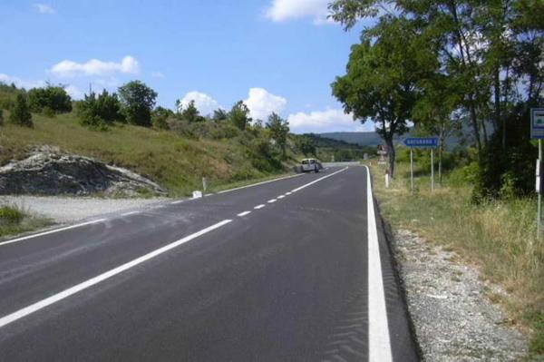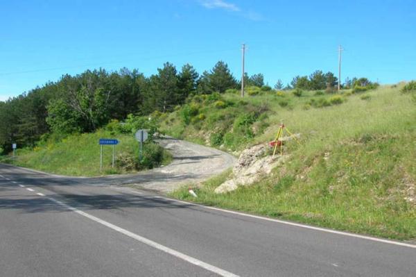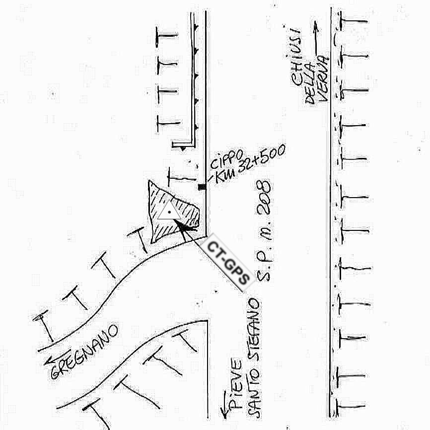 Centrino in acciaio inox infisso su roccia affiorante nelle vicinanze del bivio tra la strada S.P. n° 208 e la strada per Gregnano presso il Km 32 + 500.