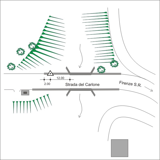 | Materializzazione | Centrino in acciaio inox cementato sulla spalla destra a monte del ponte sul torrente Carlone. |