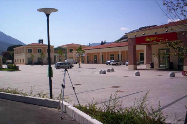 | Materializzazione | Centrino in acciaio inox infisso sulla sommità del muretto che delimita il piazzale-parcheggio del nuovo centro commerciale in prossimità della rotonda del nuovo incrocio tra la S.S. che porta a Castelnuovo Garfagnana e la S.R. 12 per Lucca e Borgo a Mozzano Centro. |