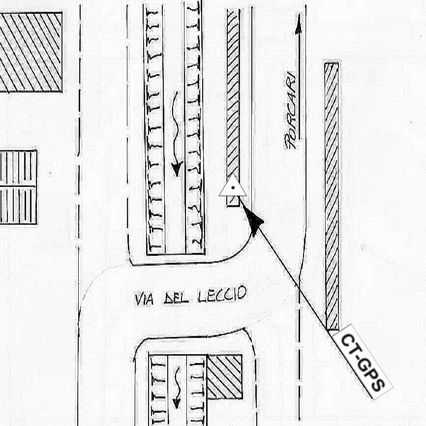 | Materializzazione | Centrino in acciaio inox infisso sul muretto in cemento armato posto a bordo dei Via del Riccio. |