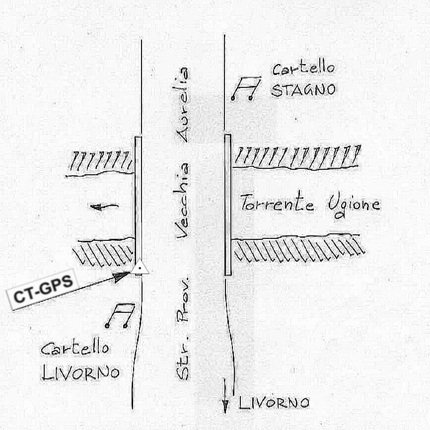 | Materializzazione | Centrino murato sul marciapiede del ponte posto sulla S.P. Vecchia Aurelia ( n° 39 ) in località Ponte Ugolino – Tombolello. |