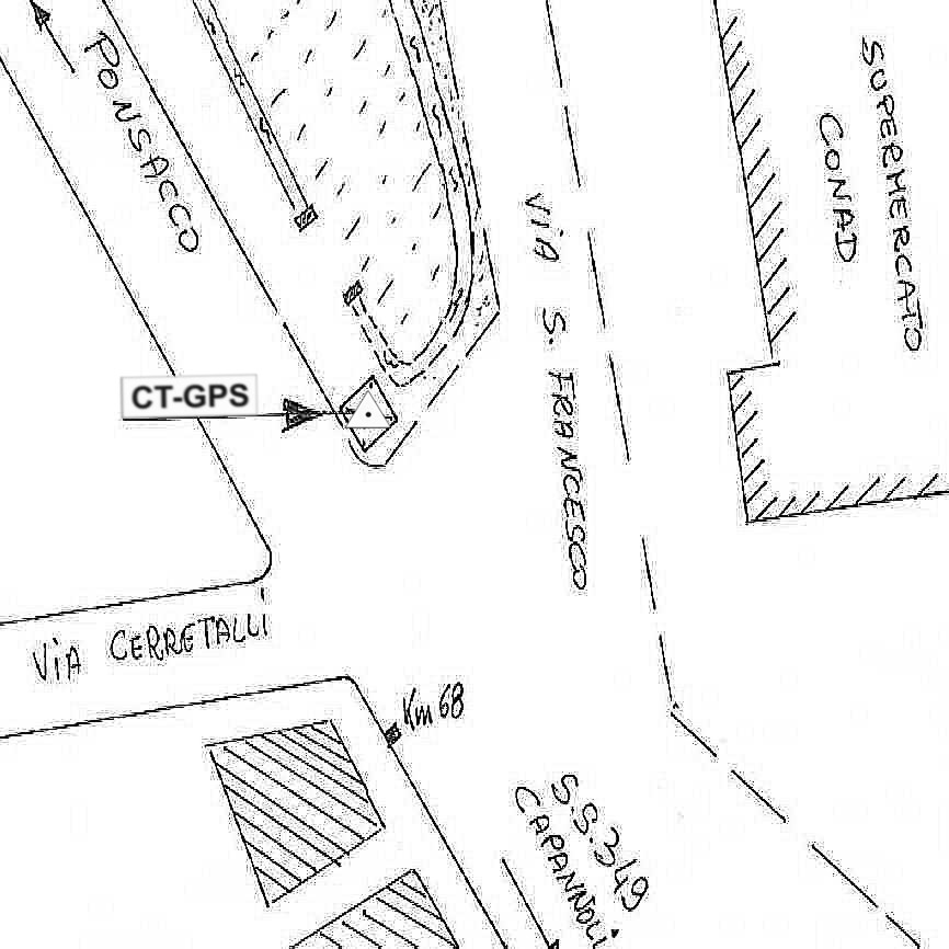 Centrino in acciaio inox murato sul basamento in cemento posto al bivio della strada S.S. 349 al Km 68 con via San Francesco, di fronte al supermercato " CONAD ".