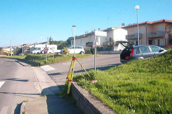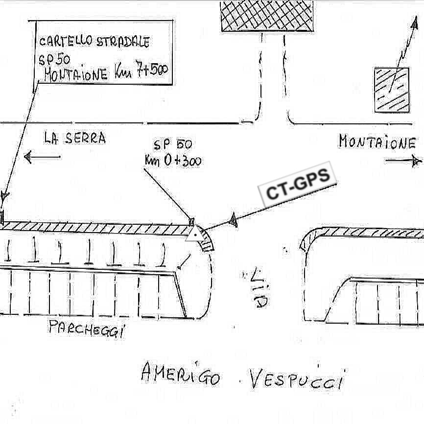 Centrino in acciaio inox infisso sul muretto in cemento armato posto sulla starda S.P. 50 al Km 0 + 300, di fronte al bivio della via A.Vespucci in località " Serra ", nel comune di San Miniato.