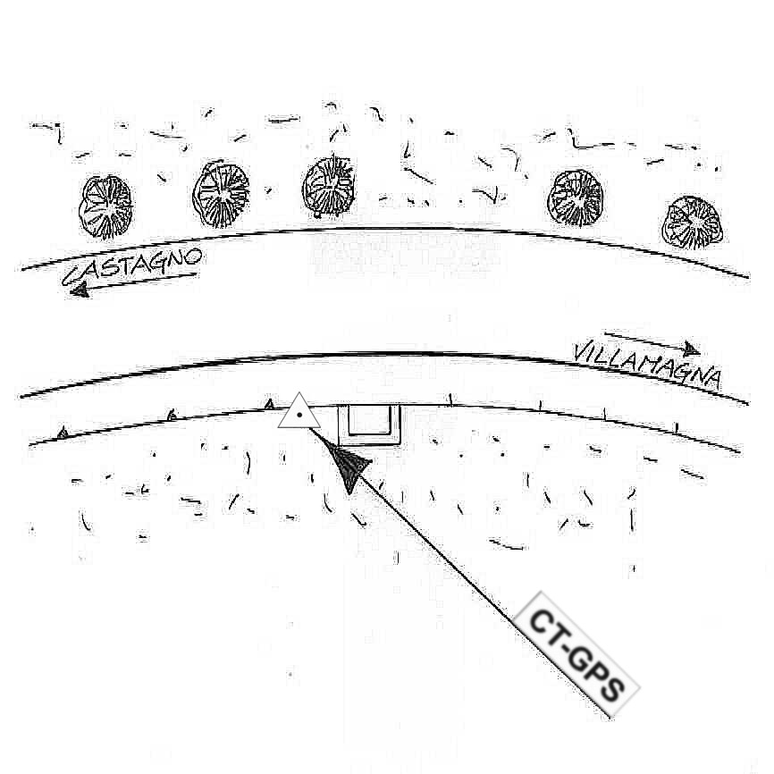 | Materializzazione | Centrino in acciaio inox infisso sul muro di sostegno sulla strada S.P. n° 4. |